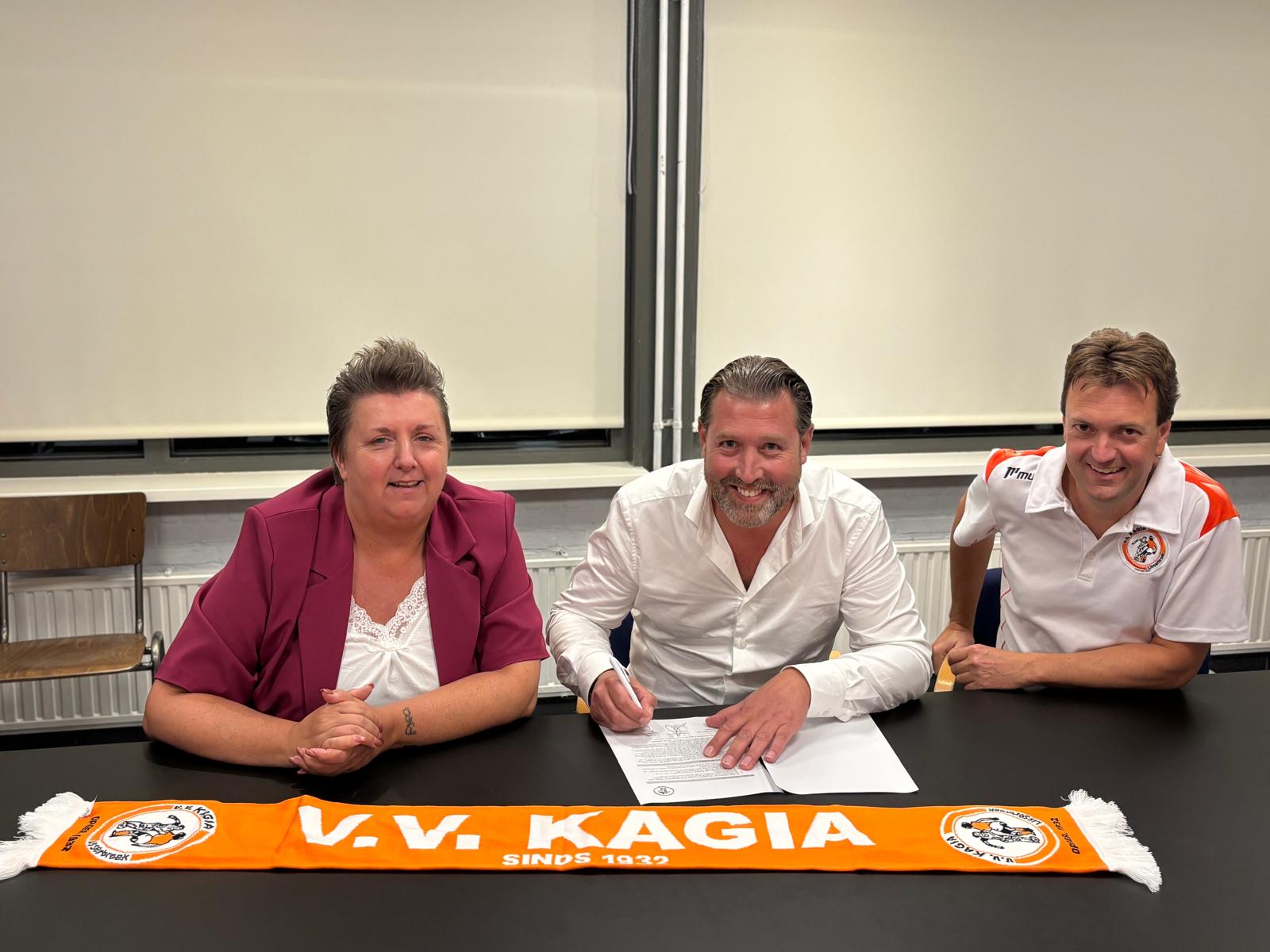 Dinsdag 2 september jongstleden hebben De Hypotheker Nieuw-Vennep en v.v. Kagia de verdere samenwerking officieel bekrachtigd. Edgar Hollander (De Hypotheker Nieuw-Vennep), Elbert Hulsbos (Voorzitter v.v. Kagia) en Chantal Wullems (Secretaris v.v. Kagia) ondertekenden de overeenkomst, waarmee De Hypotheker Nieuw-Vennep de komende vier seizoenen samen met LT Afbouw de trotse sponsor is van het kledingplan jeugd van v.v. Kagia.